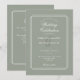 Linhas geométricas elegantes enquadram suas informações de casamento personalizadas em tipografia chic num fundo verde sage. Com seus detalhes e código QR do site de casamento no verso. Concebido por Thisisnotme©