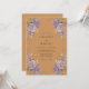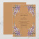 Este design apresenta um fundo quente de sienna que contrasta lindamente com aglomerados exuberantes de hortênsias lavanda. Folhas delicadas e folhagens douradas flanqueiam as laterais, criando uma atmosfera outonal refinada. Perfeito para um evento rústico ou boêmio, as ilustrações botânicas em aquarela oferecem uma estética vintage.
