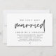 Moderno cartão de convite de casamento às escuras com tema de letra manuscrita minimalista (acabamos de nos casar). É perfeito para a recepção de casamento às escuras / festa de celebração pós-casamento. Adicione seus detalhes em fonte / letra preta correspondente.
