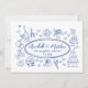 Convites Casamento Azul Caprichoso à Mão Desenhado à Mão