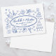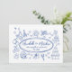 Convites Casamento Azul Caprichoso à Mão Desenhado e Escrit