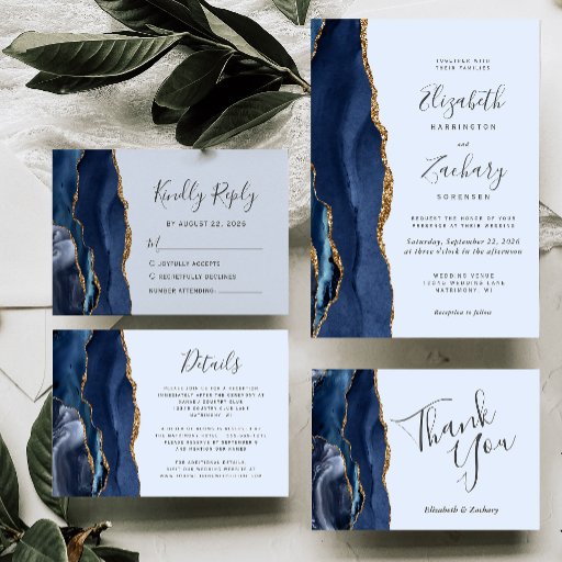 Navy Gold Agate Pale Blue Wedding SuiteCriado por Akhates Designs