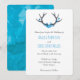 Belos galhos de veados de aquarela e Flores Azuis Daîs são perfeitos para um Casamento de Lama Branca. A aquarela no verso é opcional. Personalize este tema do país de inverno com seus próprios detalhes. Use papel de feltro de ponta superior para o aspecto mais fino pintado à mão com aquarela.