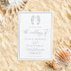 Este clássico design de convite para casamento branco e azul empoeirado é perfeito para casamentos costeiros e náuticos e de destino de praia, com dois cavalos-marinhos bonitos se beijando no topo, uma caligrafia elegante com roteiro e um quadro ao redor da borda.
