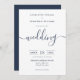 A simplicidade é muitas vezes a melhor escolha. Convide sua família e amigos para o seu casamento com os convites de casamento azuis de marinho minimalista com caligrafia moderna. Itens correspondentes disponíveis.