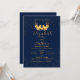 Convites Casamento Azul com Marinho Floral de Aves Douradas