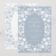 Ponha o tom para o seu dia especial com este charmoso convite de casamento personalizado com um simples quadro floral branco desenhado à mão num estilo romântico de arte folclórica. Delicada, artística, e lindamente simples, o fundo azul empoeirado faz a intrincada fronteira floral realmente brilhar, oferecendo um elegante, mas convidativo, olhar que combina tudo, de uma celebração acolhedora a brunch a um fim de semana de casamento de cheio. Personalize facilmente este convite editável online com seus nomes e detalhes de casamento. Você pode até mudar a cor de fundo ou ajustar a matiz do design floral para combinar perfeitamente com o seu tema de casamento. Escolha o formato que melhor atenda às suas necessidades de planejamento: - Faça com que ele seja impresso profissionalmente em papel premium para manter o eterno - Ou faça o download instantâneo do arquivo digital de alta resolução e o compartilhe por e-mail ou texto, perfeito para o planejamento de última hora ou celebrações ecologicamente conscientes Elegante, moderno e fácil de personalizar, este convite de casamento faz uma primeira impressão sincera que seus convidados adorarão.
