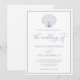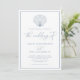 Convites Casamento Azul com Seashell Elegante Branco Dusty