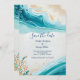 Celebre o seu amor costeiro com este belo casamento. As ondas vibrantes do oceano e os conchas coloridas criam uma vibração pré-desidratada, complementada por um trabalho de arte generativo. Personalize com seu monograma e detalhes para uma celebração verdadeiramente notável. Crie uma experiência inesquecível que reflita seu vínculo único com um pano de fundo de matizes azuis e vibes de praia de verão."