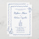 Convites Casamento Azul De Cobalto Ilustrado Por Whimsical