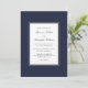 Clássico e elegante, este convite de casamento saboroso usa um simples quadro azul marinho em volta do seu texto. Uma borda dupla fina de cinzas envolve o texto para adicionar detalhes extras ao design. Lindos pares de rostos de texto e texto serif transmitem seus detalhes de casamento com elegância. Personalize o modelo de texto com os detalhes do casamento. Você pode alterar o texto e adicionar ou remover linhas de texto conforme necessário. Se desejar fazer alterações adicionais nas fontes ou cores, escolha "clicar para personalizar mais" na parte inferior da modelo de texto. Este convite é uma escolha maravilhosa para casamentos em qualquer estação do ano.
