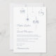 Elegante ornamentos de gelo azul de Natal, convite de casamento no inverno com letra elegante. Pormenorizado designs de ornamento azul-gelo. Personalize com os seus nomes e as suas informações de casamento na letra azul do script e em letra serif. Azul gelado de volta. Projetado para combinar com nossa Coleção de Casamentos de Ornamentos de Balas de Natal Azul de inverno.