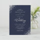 Elegantes convites de casamento marinho azul e prata com brilho prateado num fundo azul marinho com tipografia moderna. Convites de casamento chic perfeitos para um elegante e luxuoso casamento azul e marinho de prata.