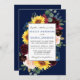 A moderna Elegante Watercolor Burgundy Marsala Convite Floral para Casamento de Quadros Florais inclui rosas burguentos, rosas cor-de-rosa, flores vermelhas, flores azuis, girassóis, folhas de eucalipto e verde botânico.