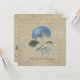 Flor azul do hydrangea do vintage no fundo de papel natural antigo com rotulação desvanecida da caligrafia. Personalize a parte dianteira com nomes dos noivos. Inclua detalhes feitos sob encomenda do casamento na parte traseira. Os Hydrangeas são uma escolha floral popular bonita para casamentos em qualquer altura que do ano, e seus convidados serão certos amar este convite simples contudo elegante. Design botânico do impressão do vintage das expressões de papel.
