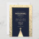 Celebre seu casamento no inverno de estilo com este convite para casamento de ouro de luxo e marinho azul. Apresentando uma elegante borda de folha de ouro, uma festiva design de árvore de Natal e uma sofisticada tipografia em fundo de marinho profundo, este convite é perfeito para casais planejando uma glamourosa celebração de feriado. Personalize facilmente com seus detalhes.