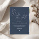Anuncie seu dia especial com este elegante casamento azul de marinho, salve o cartão de data. Projetado com uma escrita moderna minimalista sobre um fundo de marinho profundo, é a maneira perfeita de deixar que os entes queridos marquem seus calendários. Personalize facilmente com seus nomes, data do casamento e local. Este cartão faz parte de um pacote de artigos para o casamento de marinhos de cheio, incluindo convites, cartões RSVP, cartões de detalhes, menus, números de tabelas, gráficos de assentos, cartões de obrigado e muito mais. Ideal para casais planejando um tema de casamento clássico, moderno ou formal de marinho.