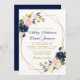 Blush Cor de Água Elegante Moderna e Blush Azul Floral, Dourado Convite para Casamento de Quadros Geométricos