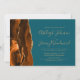 A borda esquerda deste elegante convite de casamento moderno apresenta uma laranja queimada e uma aquarela ferrugem borda agitada com falsa brilho de ouro. O texto personalizável combina manuscrito dourado, fontes em copperplate e itálico em um fundo azul lacrimogêneo. O verso apresenta uma design de cor laranja queimada e dourada.