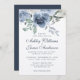 Convite para casamento Floral, azul empoeirado e rosa de marfim, com elegante caligrafia manuscrita guiada e tipografia clássica, e um toque na moda de rosas pintados com aquarelas em uma paleta azul-chic, marfim e verde. A parte traseira do cartão está em uma cor azul escura. Desenvolvido exclusivamente para você pelo Happy Dolphin Studio. Se precisar de ajuda ou produtos correspondentes, entre em contato conosco através do bate-papo da loja. Estamos felizes em ajudá-lo a fazer seu casamento o dia mais bonito!