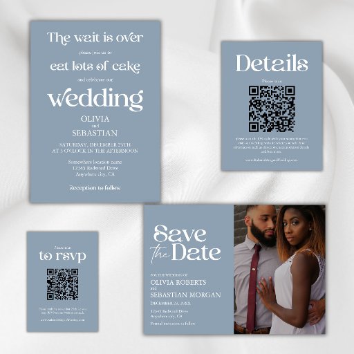 Convites Casamento Azul Dusty com Script Minimalista Funny