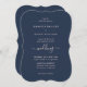 Complemente sua festa de casamento azul e azul marinho com esses convites de casamento elegantes com uma fonte moderna. Personalize facilmente esses cartões minimalistas online. Itens correspondentes disponíveis.