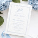 Elevem seu casamento azul francês com este convite para casamento azul personalizado de Toile Floral Dusty. Projetada para um tema de casamento azul, esta peça elegante combina encanto clássico com simplicidade moderna. Perfeito para um tema de casamento azul claro ou casamento azul empoeirado, é ideal para um casamento na Costa Leste. Estes simples convites de casamento fazem parte dos nossos modelos de convite para casamento, oferecendo beleza eterno para o seu dia especial. Procure nossos cartões de convite para casamento para mais ideias de convites para casamento!