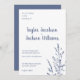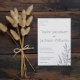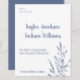 Design moderno e simples em branco e azul ardente. Este design limpo é elegante e eterno. Tipografia de script para nomes. Acentuado com gramíneas.