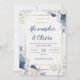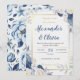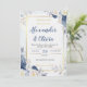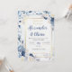 convite de casamento azul e floral elegante de outono
