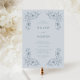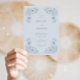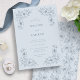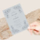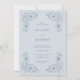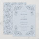 Este Convite de Casamento Azul Empoeirado Vintage é uma obra-prima de elegância atemporal. Este convite exala simplicidade e charme vintage, apresentando um fundo azul empoeirado adornado com delicadas flores cinza-azuladas dispostas em uma moldura clássica. O padrão coordenado no verso adiciona uma camada extra de sofisticação, tornando-o perfeito para casais que buscam uma estética refinada e elegante para o seu casamento.
