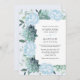 Estes elegantes convites de casamento apresentam uma moderna cor d'água, cor azul floral poeirenta, suculentos e design de folhagem de eucalipto. Personalize com seu texto. Os produtos de suíte de casamento também estão disponíveis.