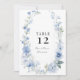 Cartões de Número de Mesa, lindos, leves e arejados, para o seu casamento, chá de panela ou outro evento formal. Todos os campos são modelos para que você possa usar em qualquer ocasião. Romântico e moderno, azul pálido e empoeirado com pistas do floral do jardim inglês marinho com vegetação verde de folha verde-muda numa fronteira ao redor das suas escolhas de menus. Um conjunto completo de produtos está disponível para compra na coleção. MSP0103
