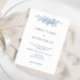 Vintage Floral Blue Wedding Convite. Um convite de casamento sofisticado clássico com flores azuis vintage em fundo branco. É ideal para celebrações elegantes de casamento em estilo clássico.