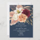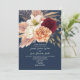 Convide seus convidados com estilo com este elegante convite de casamento floral em burgundy e azul marinho. Com rosas em aquarela em burgundy, pêssego e marfim com grama pampas e folhagens em um rico fundo azul-marinho, este design é perfeito para casamentos de outono ou inverno. Personalize com seus nomes, detalhes do casamento e localização para criar um lembrete atemporal. Cartões de RSVP, cartões de detalhes, menus, programas, save the dates e sinais de boas-vindas correspondentes estão disponíveis em nossa coleção para um conjunto de casamento totalmente coordenado.
