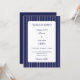 Celebre o seu dia de casamento com este convite de casamento listrado elegante, apresentando um fundo azul-marinho atemporal combinado com listras brancas. O layout limpo e clássico cria um visual refinado que se sente moderno e tradicional, tornando-o uma escolha perfeita para casais que amam a elegância discreta.