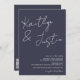 Um convite de casamento moderno, chic e elegante, com nomes personalizados, com caligrafia escrita à mão, em branco, em azul marinho. Todas as cores de texto, nomes e fundo são personalizáveis. Um convite simples e minimalista, adicione seu código qr para rsvp, detalhes e tudo em um convite.