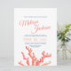 Bonito convites para casamento de corais aquosos. Belas convites de casamento são ideais para um casamento temático em praia, oceano ou coral. Personalize com seus próprios detalhes. Outros itens de correspondência também estão disponíveis. © Original sob a pintura a aquarela e design por Sarah Trett www.sarahtrett.com para www.mylittleedenweddings.com