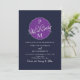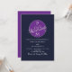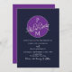 Convite para casamento elegante, moderno, contemporâneo, mínimo, simples roxo e marinho azul com monograma único e código QR no verso.