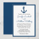 Defina o tom divertido do seu casamento com este convite de casamento azul naval e branco com âncora de navio. Este convite de casamento com tema de marinheiro encantador é perfeito para o seu casamento de verão, náutico, destino ou praia. Por favor, role para baixo para ver os produtos correspondentes que você possa precisar.