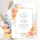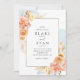 Aprecie seu convidado com este belo convite para o casamento. Cheio simples e limpo de elegância e graça com delicadas manchas azuis de cor d'água no fundo e elegante quadro com detalhes florais em pêssego, laranja, rosa-pincel, coral empoeirado, creme e matizes de champanhe mostrando seus detalhes de casamento. Palavra em estilo na moda, mas mínimo, com combinação estética de caligrafia moderna e tipografia de blocos. Opção de mudar "juntamente com os seus pais" para "junto com as suas famílias", "juntamente com a alegria do excelente" , "juntamente com o prazer do excelente" ou "em conjunto com os corações abertos". Capacidade de editar o design usando a ferramenta design, usando o botão no final das caixas de texto modelo e fazer alterações na posição do texto, no estilo da fonte ou no tamanho. Parte da nossa coleção "Peach Floral Delight and blue" com uma variedade de produtos de coordenação disponíveis. Visite a coleção inteira em: https://www.zazzle.com/collections/peach_floral_delight_with_blue-119436951689312574