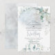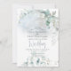 Sobre a Lua no Amor apresenta uma romântica lua azul-aquosa, empoeirada, realçada com folhagem de eucalipto e verde em várias matizes suaves de verde. Uma escolha mágica para o seu tema de casamento celestial. Design do Wedding Suite por WhimsicalArtwork™ Esta é parte de um Conjunto completo de artigos para casamentos com casamento, chá de fraldas e outros artigos de papelaria para eventos semelhantes.