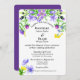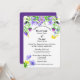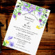 Flores silvestres, frágeis e pintadas por aquarelas — amanteparo, gerânio florestal, trevo vermelho, lagoa, palito — criam um convite único para o seu casamento. As flores estão em tons predominantemente roxos, azuis e amarelos. Esta é uma versão moderna de um convite de casamento tradicional que usa a abertura "Junto com suas famílias". O texto está em fontes sif e sans serif não cursivas. Embora as fontes e a formulação sejam modernizadas, os aspectos tradicionais continuam. As palavras são soletradas - não abreviadas. Os nomes dos casais incluem primeiro, meio e último. Esta versão está completa ou pode ser abreviada para ajustado do evento. "Recepção a seguir" pode ser editada ou excluída. As informações de RSVP podem ser editadas ou excluídas se você preferir placas de gabinete. A parte de trás é uma roxa que se coordena estreitamente com o mais profundo roxo azulado da flor de gerânio da floresta na frente.