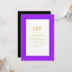 Convite moderno de casamento simplista em sotaques de azul, roxo, ouro e preto personalizáveis para seus detalhes de evento.