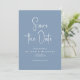 Procurando uma maneira moderna e simples de anunciar seu grande dia? Nosso minimalista "Salve a data" é perfeito para apresentar seus convidados ao dia do seu casamento. Apresentando um script e uma tipografia clássica em um fundo azul empoeirado que pode ser personalizado, o verso também inclui um código QR para os convidados digitalizarem e visitarem seu site para mais detalhes sobre o evento. Esta na moda e design prática certamente vai impressionar e deixar seus entes queridos saberem que você vai se casar.
