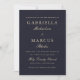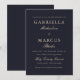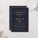Este convite de casamento simples e elegante apresenta uma bela cor azul escura com a coordenação da tipografia clássica branca-ouro.