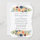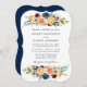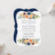 O Convite para Casamento Floral e Verde de Aquarela Elegante Moderna inclui rosas de flores avermelhadas, azuis, arrojadas, ouros de amarelo e verde botânico. Marinho Azul Para Trás.