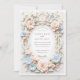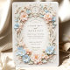Este elegante convite de casamento combina a arte barroca com detalhes florais suaves, criando um design luxuoso e eterno. O quadro do filigre de ornamentado em tons de creme e marfim é adornado com florais pastéis, incluindo as drangas cor-de-rosa e azul-claro, colocadas contra um pano de fundo refinado de creme. A design da frente destaca uma mistura harmoniosa de charme de safra e sofisticação romântica, enquanto a parte de trás apresenta um monograma ornamental minimalista cercado por intrincados motivos simétricos. Perfeito para casais planejando um casamento clássico, formal ou inspirado em jardim, este design oferece uma adição refinada e coesa à sua suíte de papelaria.