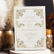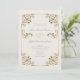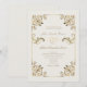Este convite de casamento elegante e inspirado no vintage exala luxo com seu esquema de cores creme marfim e dourado. Apresentando padrões florais barrocos intrincados e um design de coração de corda romântico, combina glamour atemporal com detalhes ornamentados, tornando-o a escolha perfeita para uma celebração sofisticada e encantadora.