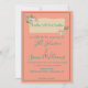Adoráveis convites de casamento de praia costeira, esta design apresenta um fundo rosa com uma fronteira verde. O topo apresenta uma faixa de praia encantadora com flores e conchas. A fonte é apresentada em verde. Personalize o seu hoje!