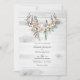 Bolas de algodão de seda rustica e eucalipto marrom e poeirentos deixam convite para casamento boêmico com penas e chifres de vassoura. Ideal para qualquer tema ou casamento de jardim. O código QR no verso direciona para o seu local de casamento onde o pessoas pode aprender mais e rsvp.
